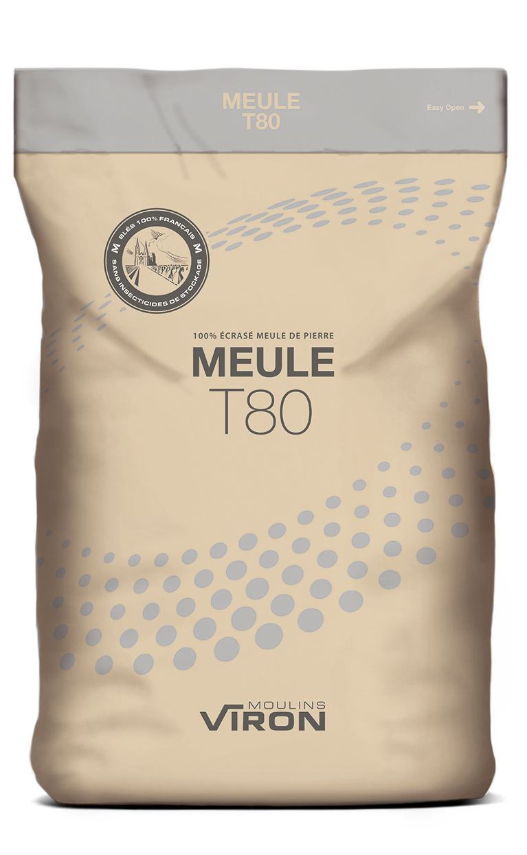 T80 MEULE wheat flour from Viron, France, is an ideal flour for sourdough baking. It is stoneground white flour, so cream-coloured and includes the nutritious and nutty-tasting for a rustic loaf full of flavour.